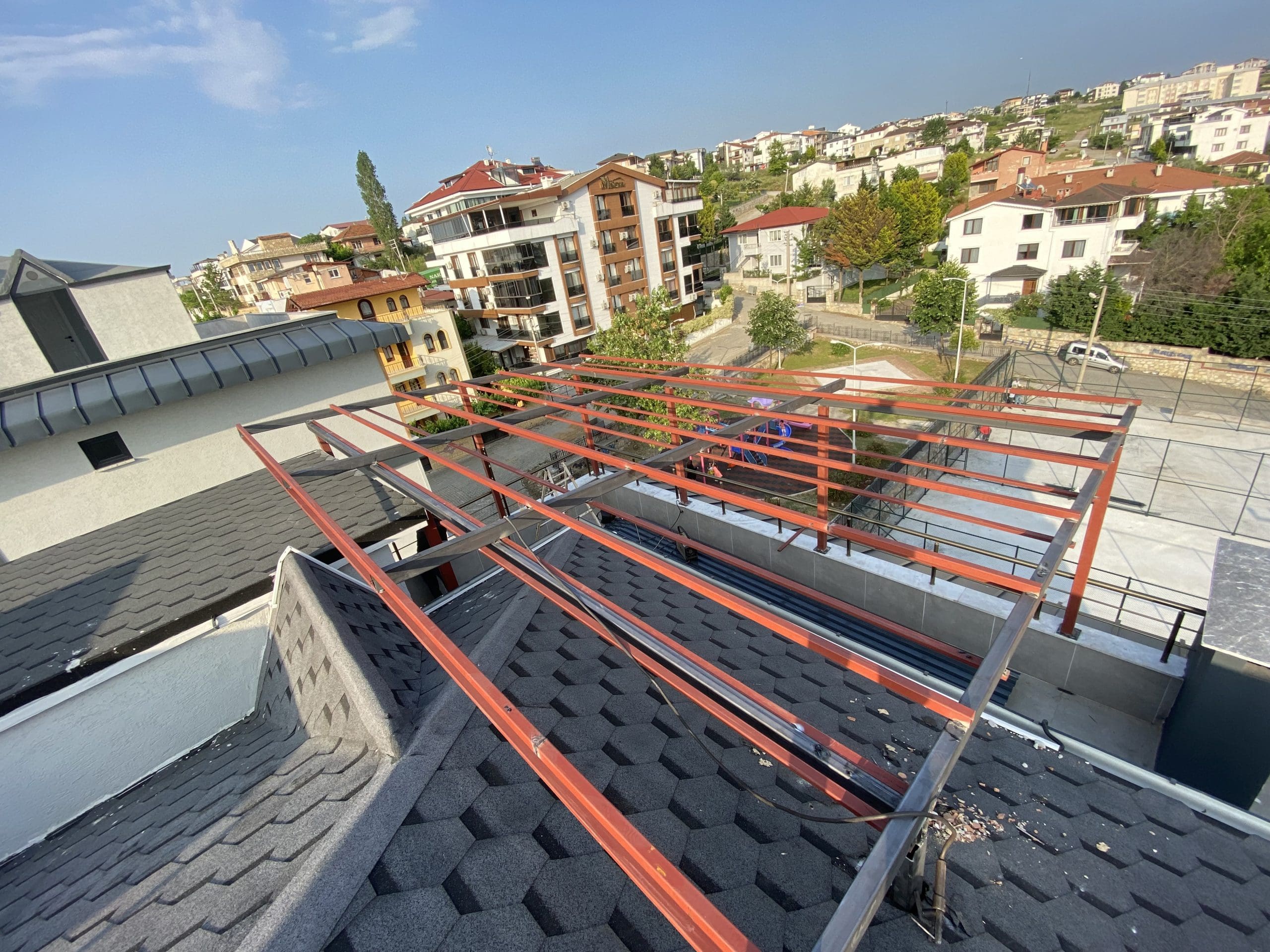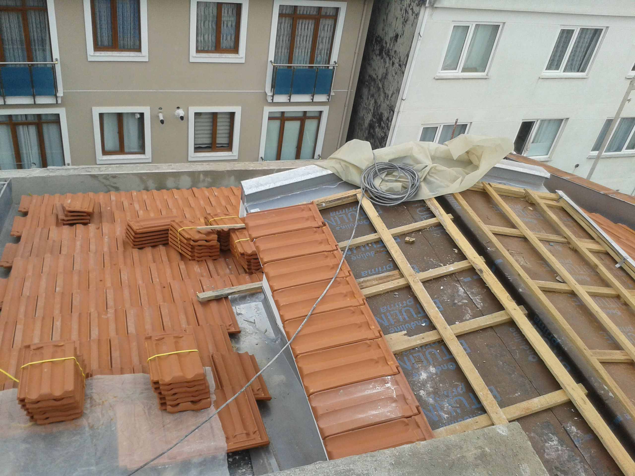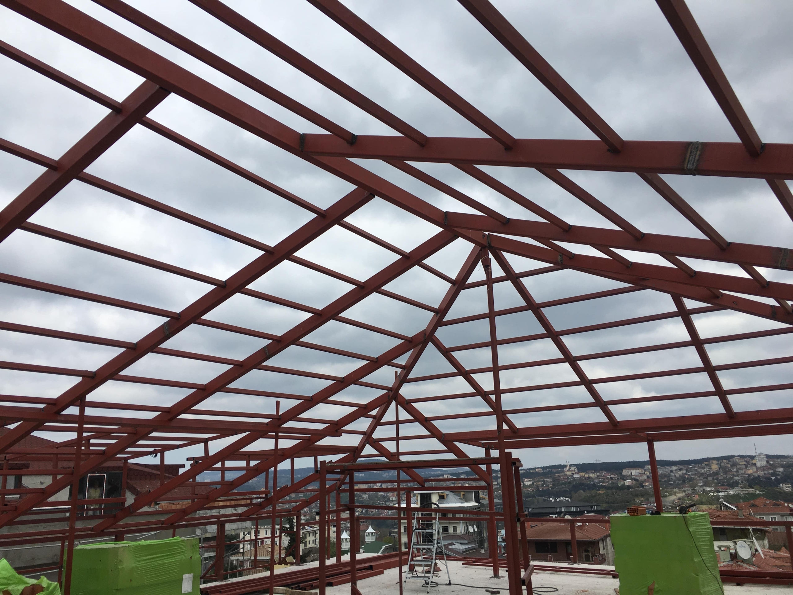Membran çatı kaplama, şıngıl çatı kaplama, kiremit çatı ve çatı oluk işleri.