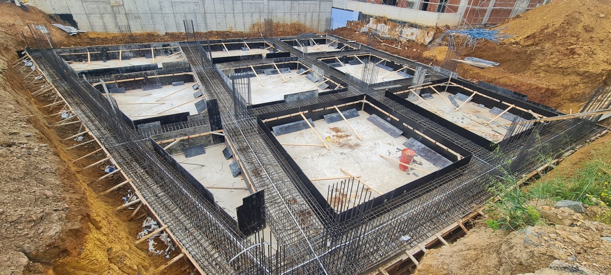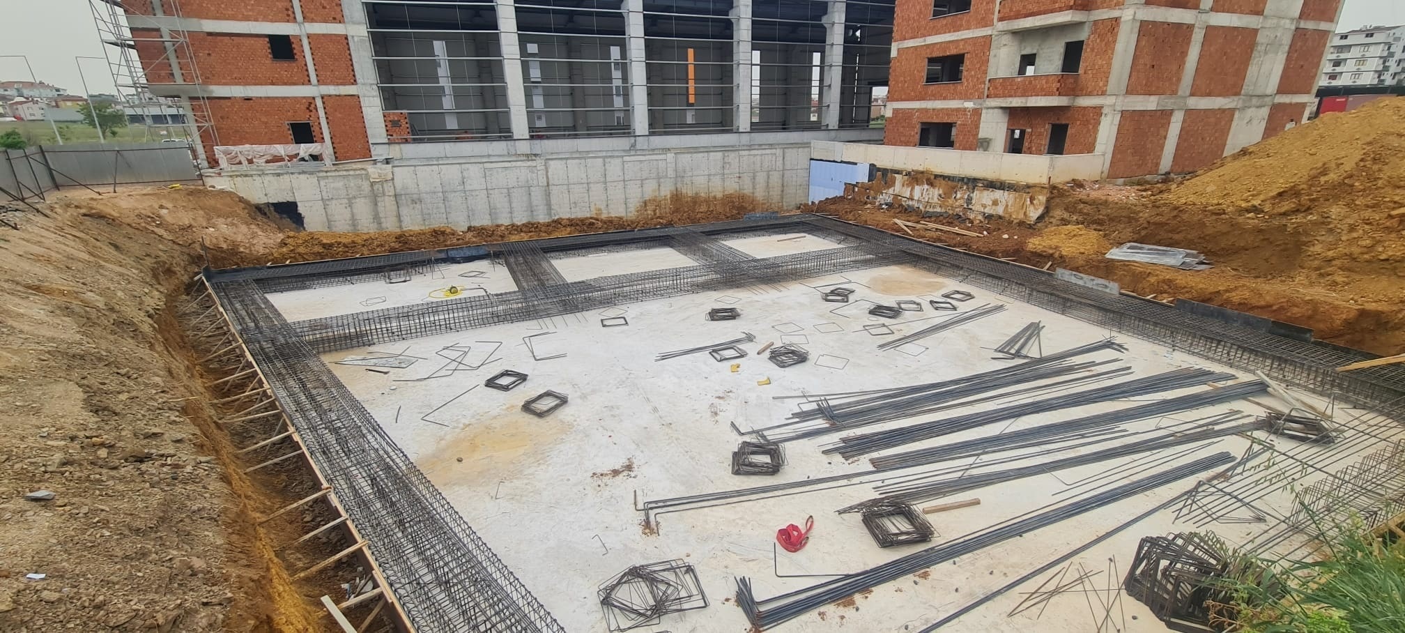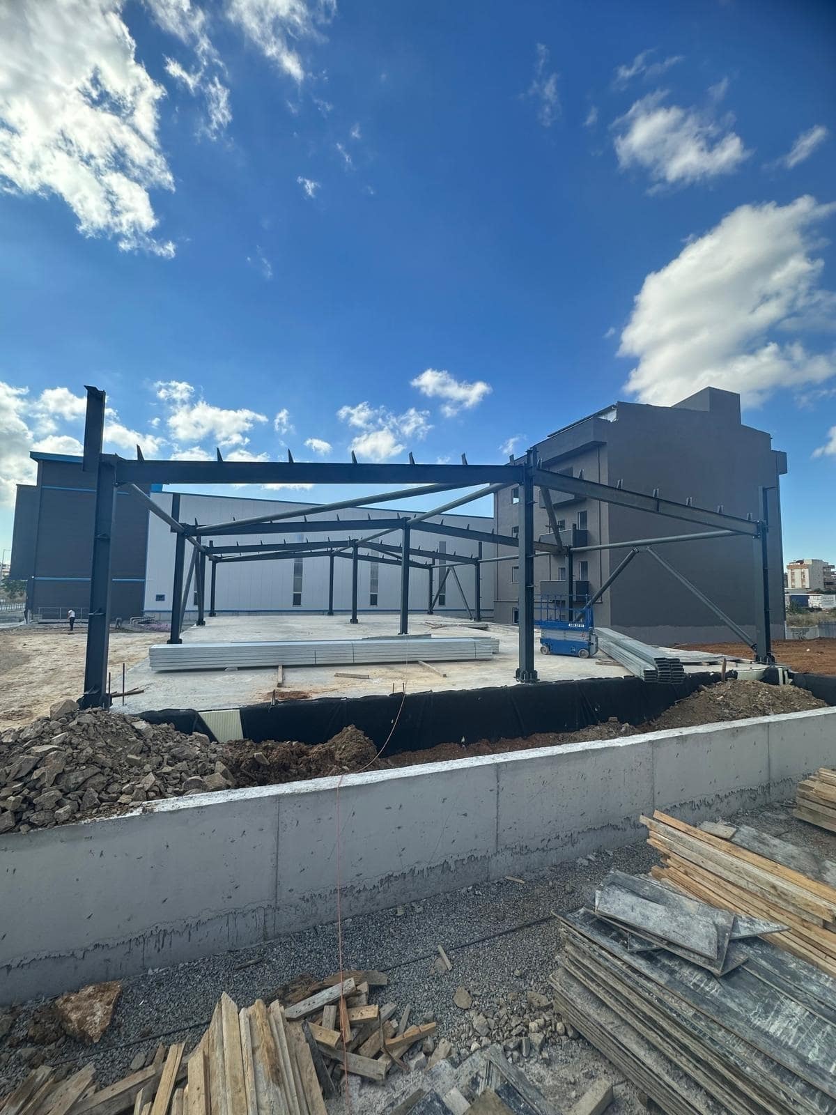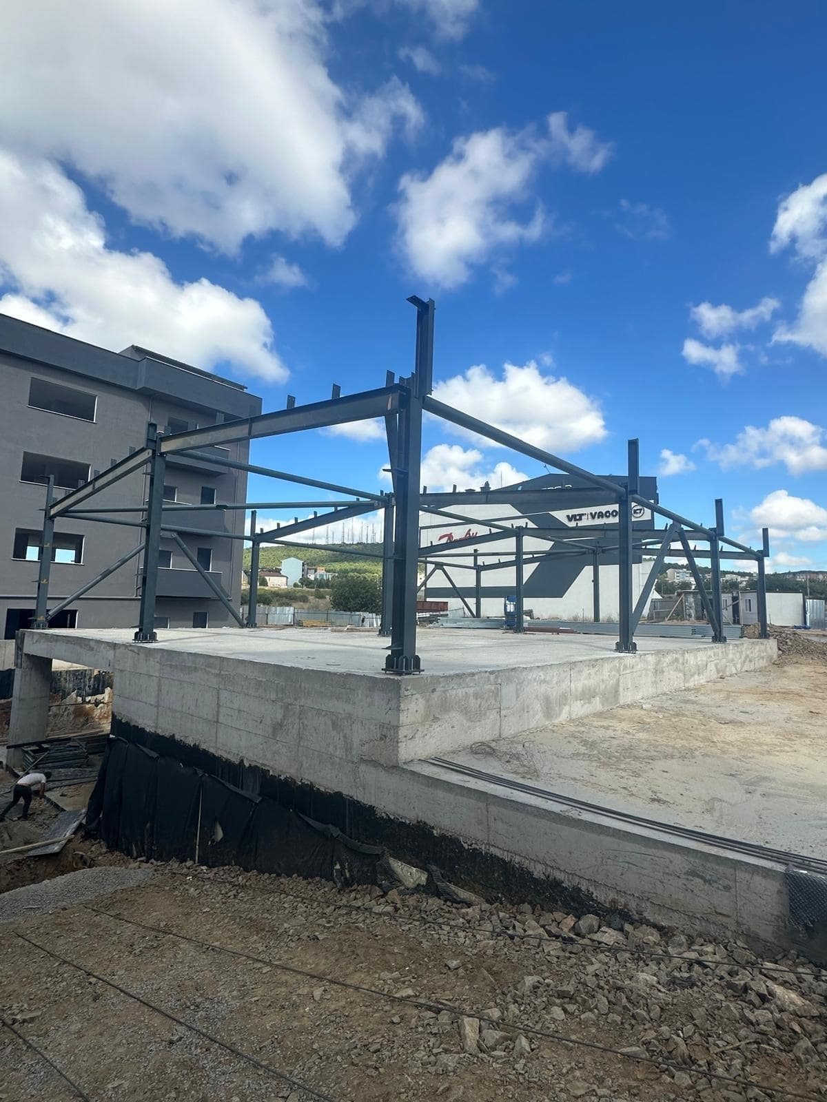 Temel yeri kazılması, demir bağlama ve beton atma işlemi sonrası çelik konstrüksiyon uygulaması.